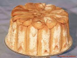 Montage de la charlotte: – Plonger chaque biscuit dans la liqueur allongée et garnir fond et paroi d’un moule à charlotte ou d’un moule à cake, côtés bombés vers l’extérieur contre la paroi)…. .