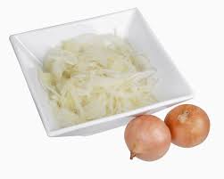 Peler et émincer finement les oignons ….. Les faire suer sur feu doux sans colorer dans une poêle + 40 g de beurre ( 8 à 10 mn) en remuant assez souvent.