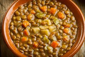 Pendant ce temps, égoutter les lentilles qui ont trempé. Les couvrir d’eau froide et les faire cuire 20 mn à petit bouillon …….. Les égoutter (ou bien égoutter les lentilles en conserve).