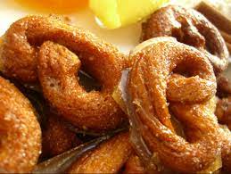 Rouler chaque bâton dans la cassonade………. puis les tourner en forme de 8 et les disposer, un peu éloignés, sur la plaque.