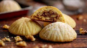 Les Ma’amoul: – Prélever 1 boulette de pâte à gâteau. Y faire un trou central avec le pouce…..Y placer une petite boulette ( 1 cuillère à café) de pâte de dattes …… Refermer la pâte à gâteau autour de la pâte de dattes pour reformer la boulette ….