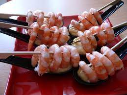 … Dans une poêle sur feu vif, chauffer 1 cuillère à soupe d’huile. Y saisir les queues de crevettes 1 à 2 mn ………. Oter du feu.