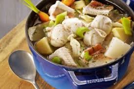 - Bouillon de légumes: – Dans un faitout, verser 2,5 litres d’eau + ail + oignon piqué de girofle + bouquet garni + sel. Porter à ébullition ……………… Y plonger carottes + pommes de terre + poireaux. Couvrir. Laisser cuire 40 mn à petit frémissement.