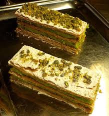 Montage: – Garnir chaque rectangle feuilleté de crème …………. Les parsemer toutes de pistaches hachées …. .
