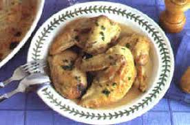 Dans une cocotte, fondre 80 g de beurre. Y faire juste blondir les morceaux de poulet ( 10 mn)…. Couvrir. Laisser doucement mijoter environ 25 mn ..