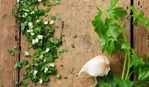 Dans un bol, mélanger ail + persil + blanc d’oeuf + thym + sel.