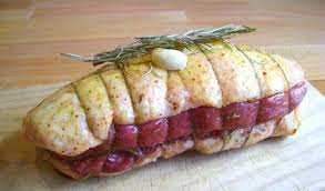 Poivrer les magrets. Tartiner la chair d’1 des magrets avec la persillade précédente……… Poser dessus l’autre magret, la chair contre la persillade…. Ficeler les magrets pour en faire un rôti.……………… Placer au frigo 2 à 3 heures.