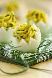 — Vous pouvez aussi retirer délicatement les jaunes des oeufs…….. Les écraser à la fourchette puis les mélanger intimement à la sauce Boyard …. et remplir les oeufs de cette farce.