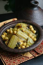 Dans une cocotte, fondre le beurre. Y faire doucement suer oignons + cannelle + sel + poivre ( 5 mn) …………… Ajouter les cubes de viande et laisser dorer toujours à feu doux de tous côtés ( 10 mn)… …… Ajouter pois chiches + cardes.