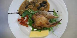 …… Retirer les cailles cuites. Les garder au chaud sous une feuille d’alu. – Jeter la feuille de laurier.