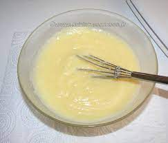 La crème: – Sur feu doux, ou mieux, dans un bain-marie ( = 2 casseroles l’une dans l’autre, la grande étant à moitié remplie d’eau), fouetter jaunes d’oeufs + sucre + les 4 c à s de Rhum mises de côté ..… jusqu’à ce que le mélange blanchisse et épaississe …. Oter du feu.