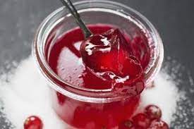 Faire doucement fondre la gelée de groseille dans une casserole …………… Oter du feu et laisser tiédir…… Badigeonner le dessus du gâteau avec cette gelée tiède ou froide mais pas encore figée.
