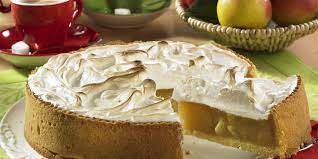Battre les blancs d’oeufs + 1 pincée de sel en neige très ferme ………… La tarte étant cuite, la recouvrir des blancs d’oeufs montés.