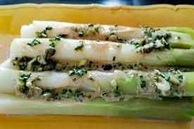 Egoutter les poireaux. Les disposer sur le ravier de service.