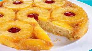 Décorer le gâteau de tranches d’ananas et de cerises confites.