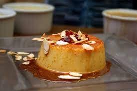 Répartir les amandes grillées dan le moule …. Verser la pâte à flan dans le moule.