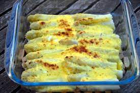 Disposer les pointes d’asperges dans le plat … Les saler et poivrer….. Les arroser de jus de citron ………….. Les parsemer de qq noisettes de beurre ………. Les poudrer de Parmesan.