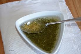 Dans un bol, fouetter vinaigre + huile + sel + poivre + persil + basilic + câpres.