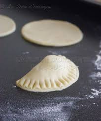 Sur la moitié des disques de pâte, déposer de la garniture au concombre et replier le disque en 2 après avoir humidifié le pourtour afin de bien souder les 2 pâtes entre elles. Bien appuyer ou former un ourlet bien appuyé. ———— ( ou bien couper les feuilles de brick en 3. Au bas de chaque bande, à qq mm du bord, déposer de la garniture et plier en triangles, gauche/droite en remontant la bande de brick).