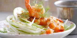 Dans un saladier, réunir gambas décortiquées + fenouil + ail + concombre + le contenu du bol. Mélanger et placer au frigo.
