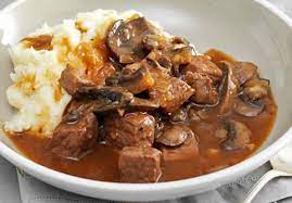- Ajouter 15 g de beurre dans la sauteuse. Y faire dorer 3 à 4 mn oignons + champignons …. Les retirer avec la viande.