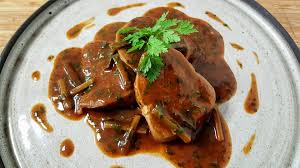 Mouliner tous les légumes pour obtenir une sauce épaisse….. En napper les tranches de langue…… Parsemer des cerfeuil et estragon restants.