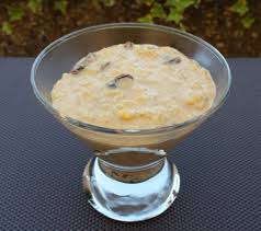 - Dans un moule à soufflé ou des grands ramequins individuels, étaler en couches successives, 1 couche de riz + 1 couche de purée de mangue … + 1 couche de riz + 1 couche de purée de mangues … etc …. jusqu’à épuisement des ingrédients … .