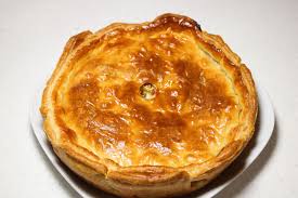 —Beurrer une tourtière ou un moule à manqué. Y disposer 1 des rouleaux de pâte feuilletée en le laissant un peu déborder……. Placer au frigo.