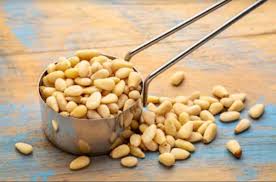 — Pendant ce temps dans une autre poêle sur feu doux, à sec, faire griller les pignons……. Ajouter pignons + Xérès dans les champignons … Mélanger 3 mn et servir.