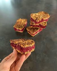 - Mettre le reste dans le moule en appuyant bien pour l’étaler uniformément……… Recouvrir jusqu’à 1 cm du bord avec la confiture de framboises ………………. Parsemer de la part de mélange mis de côté, en l’émiettant.