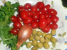 - Dans un saladier, mélanger poulet + oignons + les 3/4 des tomates + olives.