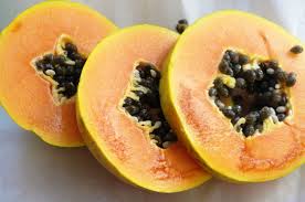 Couper les papayes en 2. Retirer les graines. Peler chaque moitié. Tailler la pulpe en dés.