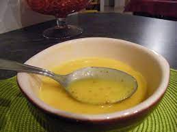 - Verser la soupe bouillante dans la soupière sur le mélange de moutarde. Mélanger vivement 2 mn et servir très chaud.
