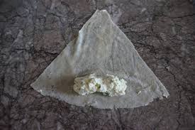 - Etaler devant vous des feuilles de brick ( ou de la pâte brisée) coupées en triangles ou rectangles.