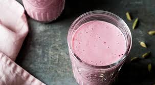 - Répartir le lassi dans des grands verres ……… Les couvrir des qq cuillères de purée de fraises mises de côté.