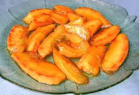 ***Pendant ce temps, préparer un sirop en portant à ébullition 10 cl ( 1/2 verre) d’eau + le sucre puis à petit bouillonnement 10 mn ….. Incorporer les tranches de mangue égouttées et laisser cuire jusqu’à évaporation presque complète du liquide ….