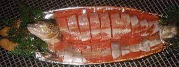 - Sur un grand plat, étaler les branches du bouquet d’aneth resté intact……….. Disposer une couche de filets de truite, côté peau contre l’aneth.……………… Parsemer généreusement d’aneth haché ……………………. Recouvrir d’une nouvelle couche de filets de truites, coté peau vers le haut ………..