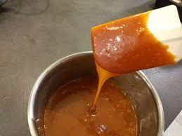 - Caramel: – Dans une casserole, porter à ébullition 5 cl d’eau + 150 g de sucres en morceaux en remuant souvent jusqu’à obtenir un caramel doré pas trop foncé …. Aussitôt, incorporer 40 g de beurre et remuer vivement 1 mn hors du feu …………. En napper les cerises ….