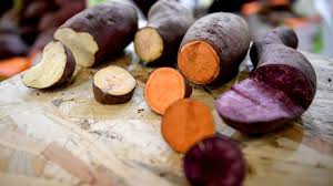 Faire cuire les patates douces avec leur peau pendant 20 mn dans de l’eau bouillante.