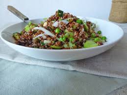 Faire cuire le quinoa suivant les indications du paquet ( en principe 15 mn dans de l’eau bouillante, qu’il reste « al dente »)….. L’égoutter.