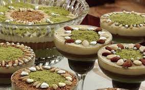 - Décoration: – Décorer le dessus des crèmes avec noisettes + pistaches + amandes, pilées ou laissées entières ( et des perles en sucre).