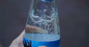Verser le tout dans un grand verre et compléter avec de l’eau gazeuse.