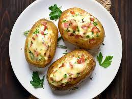 - Déposer les pommes de terre farcies côte à côte sur le plat.