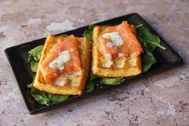 - Pour servir: – Déposer 1 tranche de saumon fumé sur chaque gaufre … puis un peu de crème citronnée.