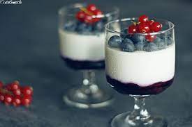 Répartir les myrtilles au fond de 4 verres.…….. Verser dessus la préparation précédente refroidie. Placer 2 heures au frigo.