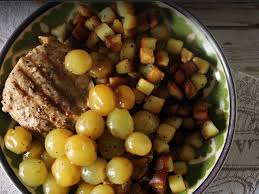 - Mettre dans la sauce le contenu du bol ( le beurre aux noix). Fouetter vivement 2 à 3 mn ……… Ajouter dans la sauce les grains de raisins + les cerneaux de noix. Mélanger 1 mn …. et verser le tout sur la viande.