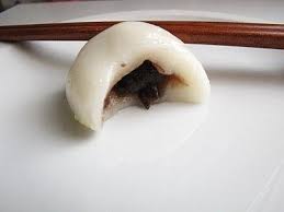 - La pâte: – Dans un saladier, piler finement le sagou …. Lui ajouter peu à peu la farine de riz gluant: vous obtiendrez une pâte …. La rouler en un long cylindre d’environ 2,5 cm de diamètre.