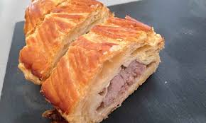 **Huiler une tourtière ou simplement une plaque du four. Y étaler 1 des rouleaux de pâte brisée …………….. Etaler dessus la farce jusqu’à 2 cm des bords….. Recouvrir du 2ème rouleau de pâte brisée et pincer le pourtour en formant un ourlet bien serré.