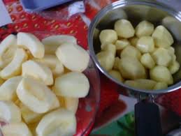 Dans une grande casserole, mettre pommes + pommes de terre + 1/2 litre ( 50 cl) d’eau + sucre + vinaigre + sel. Porter à ébullition. Couvrir et cuire environ 25 mn à petit feu: pommes et pommes de terre doivent être tendres.