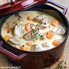 - Dans une cocotte sur feu moyen, chauffer saindoux + beurre …. Poudrer de farine et mélanger vivement 1 mn …… Arroser peu à peu avec de l’eau de cuisson du poulet tout en fouettant rapidement pour obtenir une sauce onctueuse ( et sans grumeaux !!): vous n’utiliserez pas toute l’eau de cuisson du poulet, arrêtez quand vous jugerez la sauce à bonne consistance, ni trop épaisse ni trop liquide.